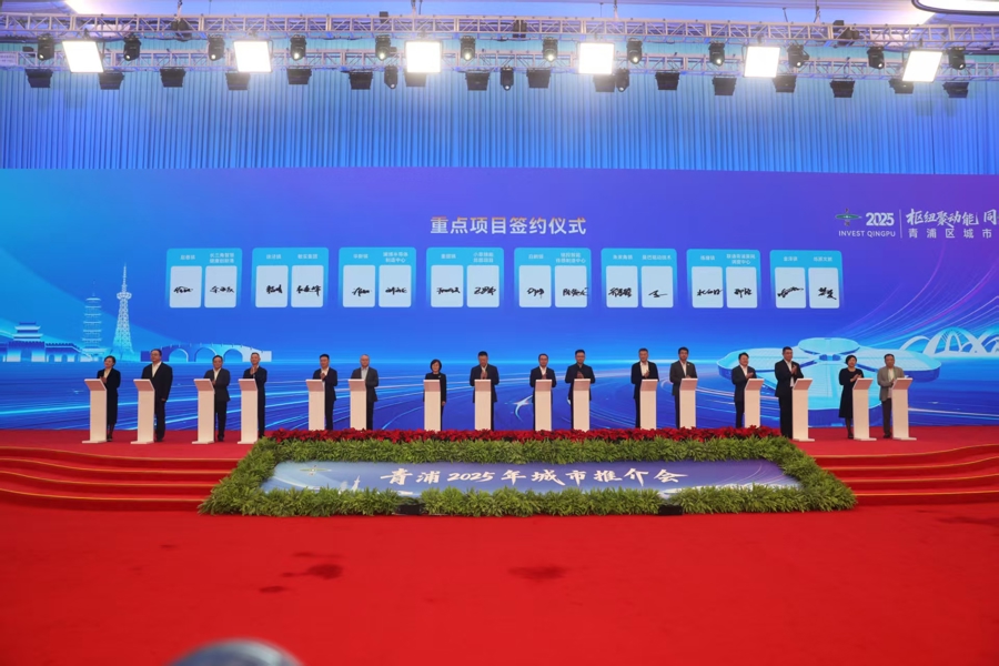 活动现场,青浦区分别与华东师范大学、中交城市投资控股有限公司签订战略合作协议。16个产业项目完成签约,涵盖新一代信息技术、现代物流、高端装备制造、新材料、生物医药及“六业”融合领域等,总投资额近百亿元。