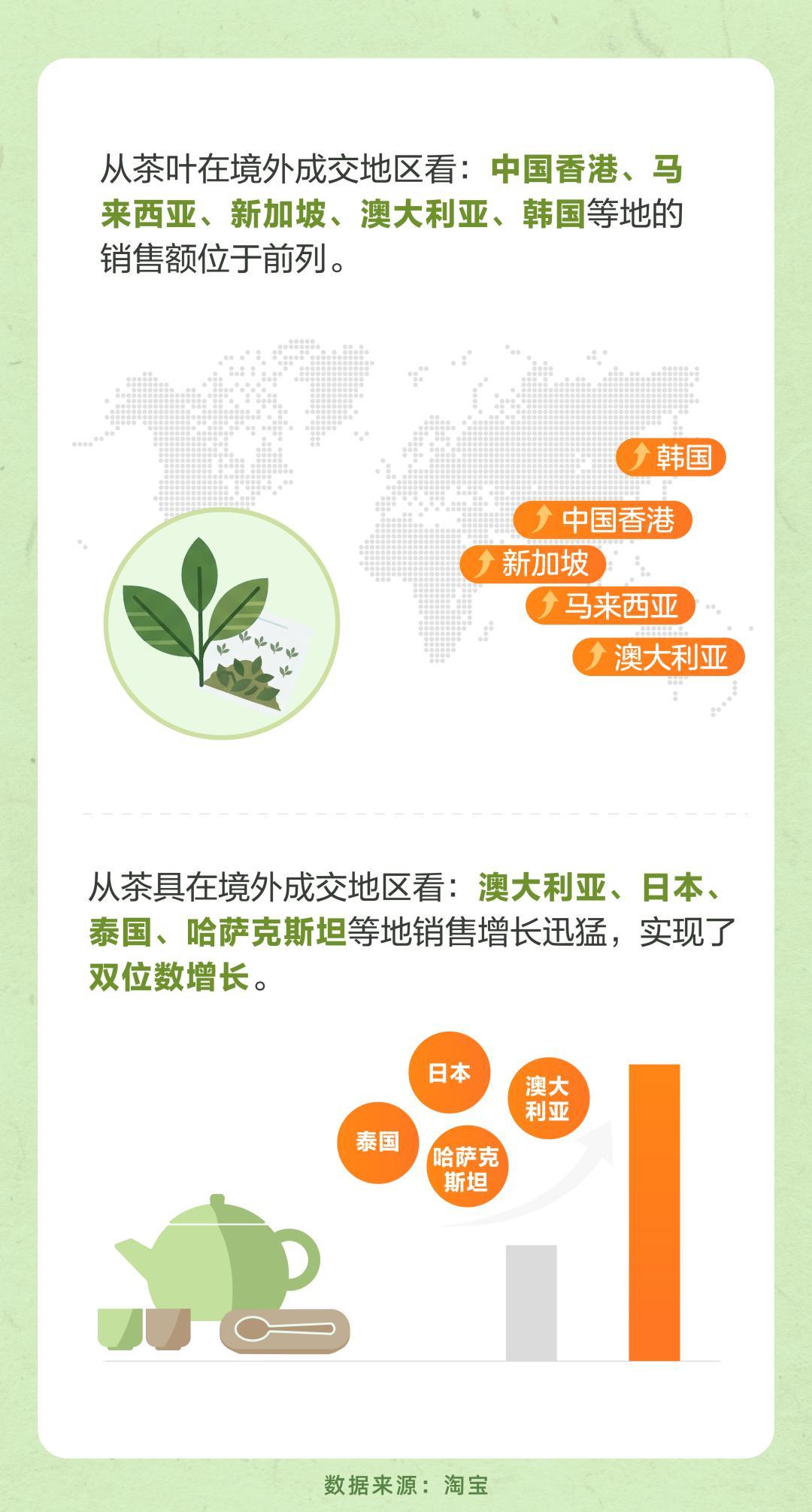 数据已经在验证这个逻辑。自淘宝出海2025年12月上线茶类目以来,平台数据显示,再加工茶(奶茶茶包、冷泡茶等新中式茶饮)的境外销售增长超过40%,领涨整个茶品类大盘。新茶饮培养的消费习惯,开始反向拉动原叶茶和茶周边产品的海外需求。茶具在澳大利亚、日本、泰国等地的销售也录得双位数增长。